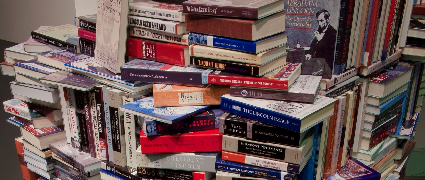 So many books have been written about Abraham Lincoln, over 15,000 books with more being written every day.  In 2012 a group of historians in Washington DC put a tribute together that visualizes what 7,000 of the books written about Lincoln would look like in a stunning tower.  The “books” are pieces of aluminum with the book covers printed on them towering 34 feet in the lobby of Ford’s Theatre Center for Education and Leadership in Washington, D.C.
